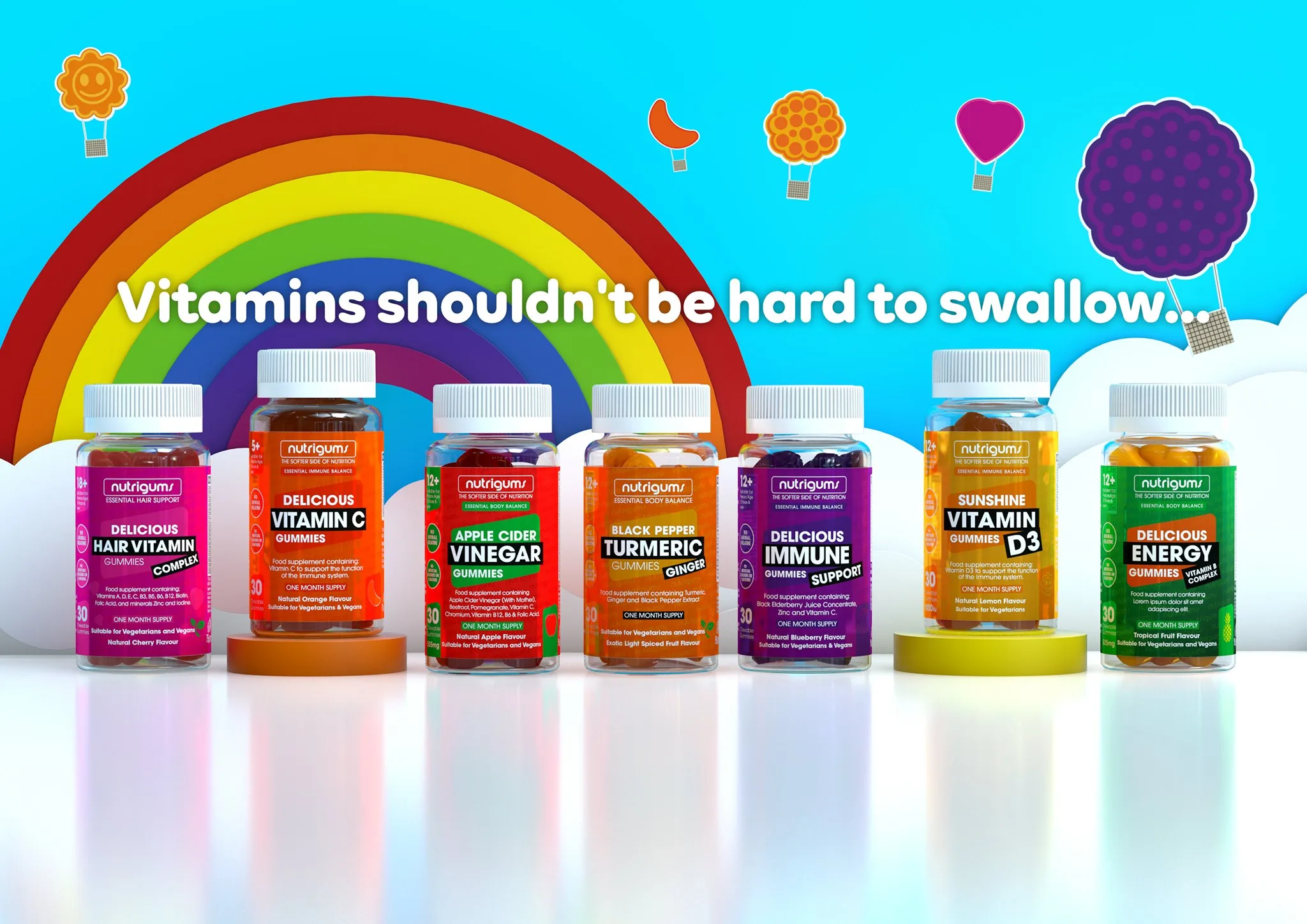 Our purpose is to make high-quality, affordable, practical vitamins available to everyone. Many adults and children struggle with taking tablets, our fruit-flavoured gummy supplements are here to fix that issue.